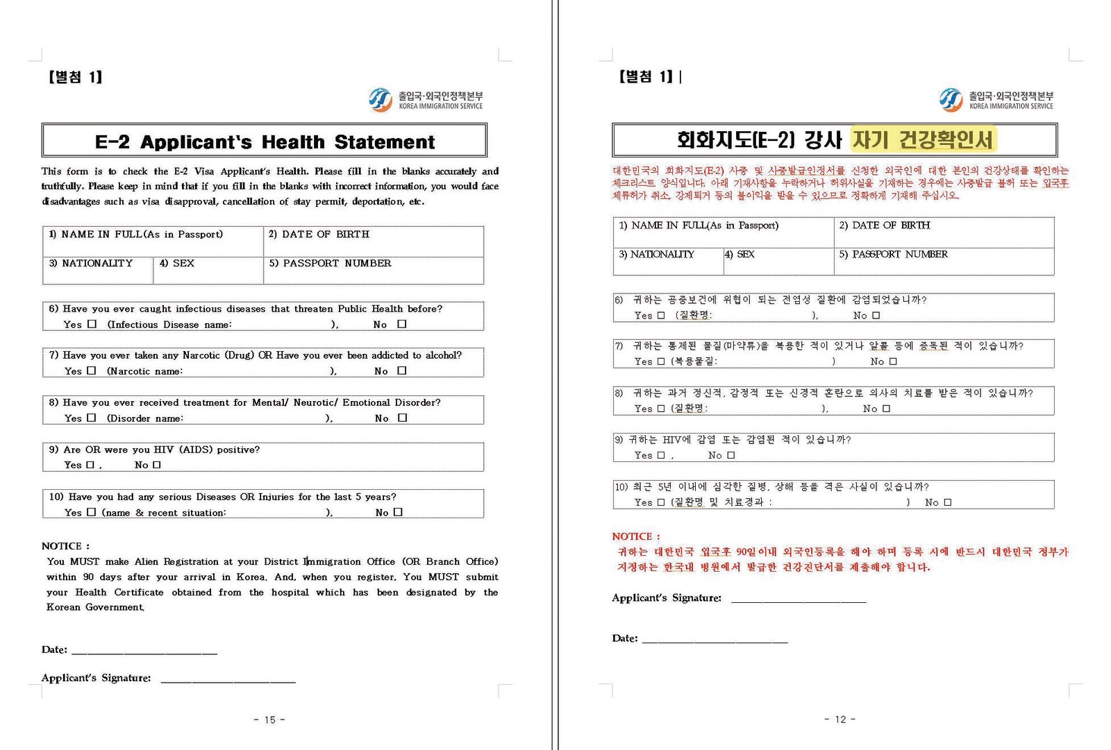 In its decision the Court focused on regulations promulgated on April 3, 2009, which the immigration office calls a "self-health statement" or a "self medical check" (this link downloads a .hwp copy). The questionnaire looks like this (note that the "self" part is only in the Korean version, marked yellow):